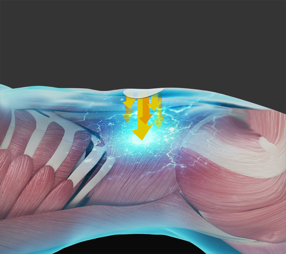 一般的な電気治療器は表面の筋肉(アウターマッスル)への刺激が中心ですが、